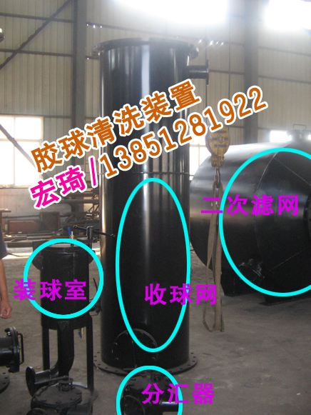 膠球清洗裝置技術特點及改造實例:我公司有一直重視研究膠球清洗裝置,并有生產膠球清洗裝置的豐富經驗。大唐電廠2×200MW機組原來的膠球清洗裝置,自投運起收球率直在30%左右,經原制造廠多次整改造,收球率還是在30%左右;電廠經多方考察,選中我公司,經我公司實地考察,根據該廠凝汽器的工況設計制造了SFG收球網,安裝上后經調試,一次收球率97%,自投運至今收球率一直保持在96%以上。湘潭電廠2×300MW機組原來的膠球清洗裝置的情況與電廠一樣,經我公司改造了收球網和對凝汽器堵死角改造后,收球率達到90%以上。